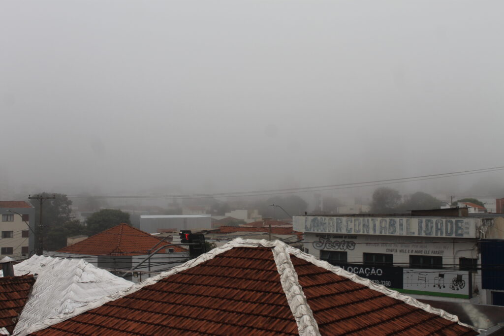 Julho amanhece com neblina encobertando telhados e prédios em Marília