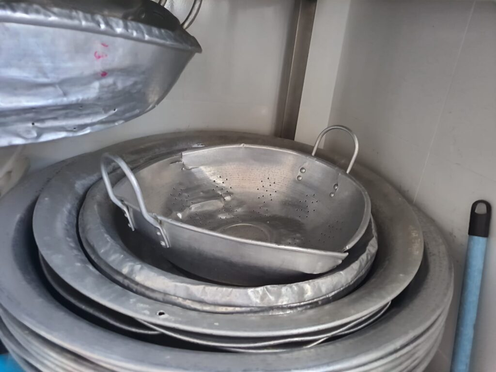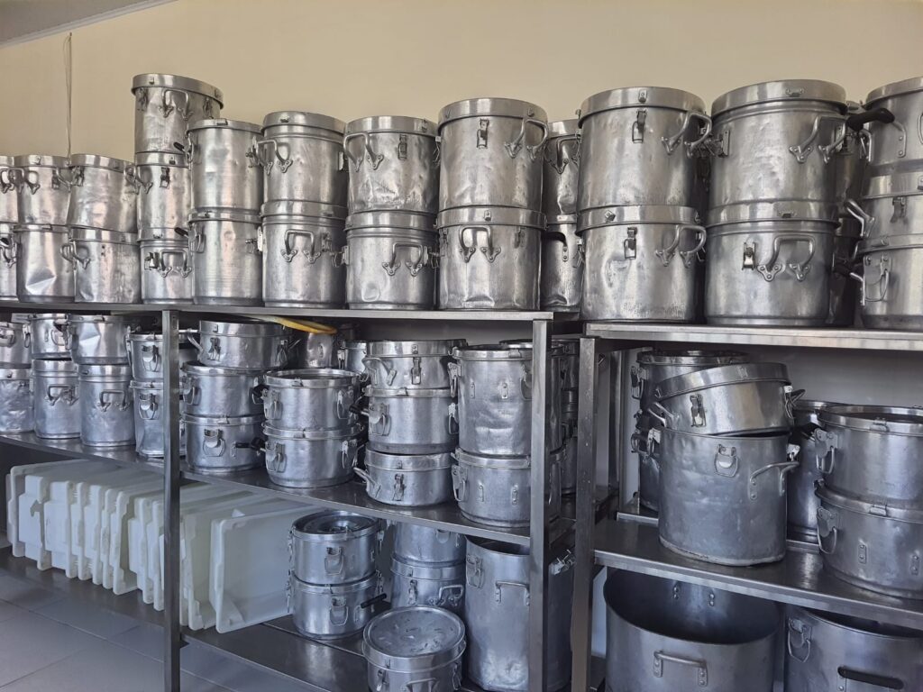 - Marmitas danificadas: Os recipientes utilizados para transportar as refeições estão amassados, sem alças, travas ou vedação, tornando inviável o transporte adequado e seguro dos alimentos.
