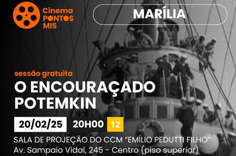 Durante o mês de fevereiro, a Secretaria Municipal da Cultura, em parceria com o programa Pontos MIS, apresenta alguns dos maiores clássicos imortais do cinema. Nesta quinta-feira, 20 de fevereiro, às 20h, será exibido O Encouraçado Potemkin.
