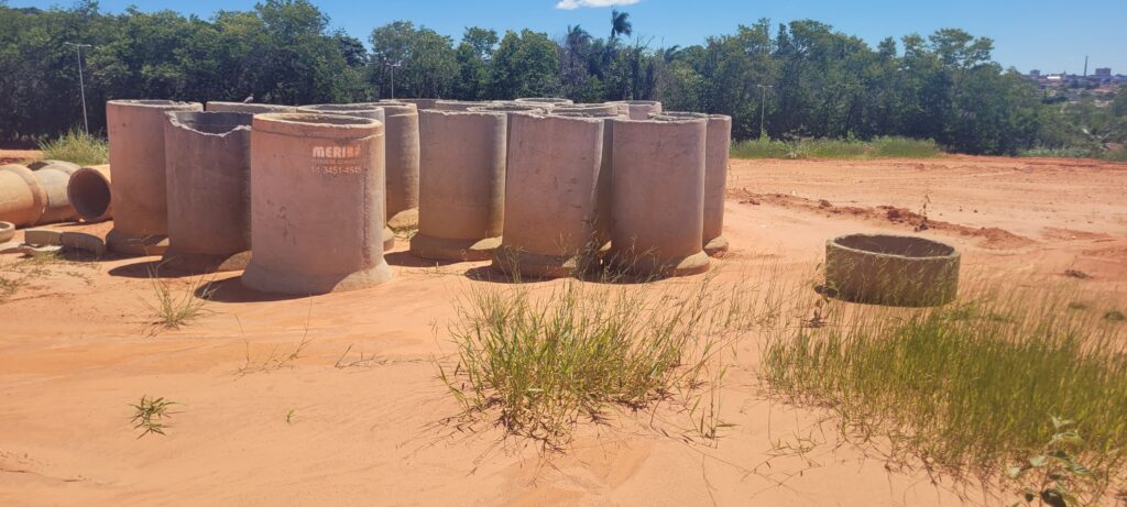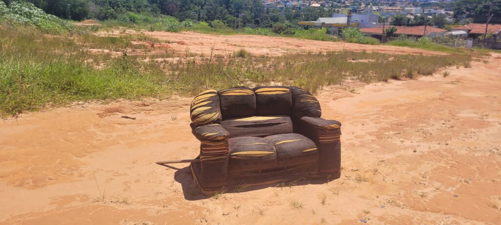 Além disso, o terreno está tomado por lixo, restos de construção, sofás velhos e tubos de drenagem de galerias pluviais, provenientes de uma obra de abertura de rua recente e não terminada, que gera outro problema grave.